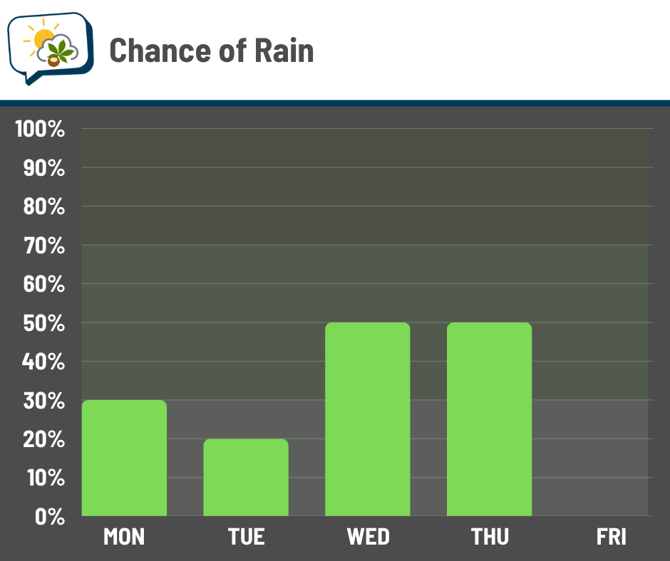 As a cold front approaches in the middle of the week, our opportunity for rain goes back up. Locally heavy rain will be possible again on Wednesday.