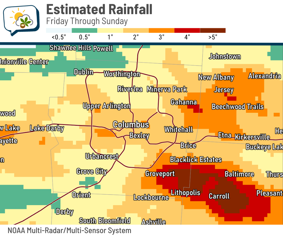 Far southeastern Franklin County into Fairfield County had amounts over four inches, causing flash flooding and road closures.