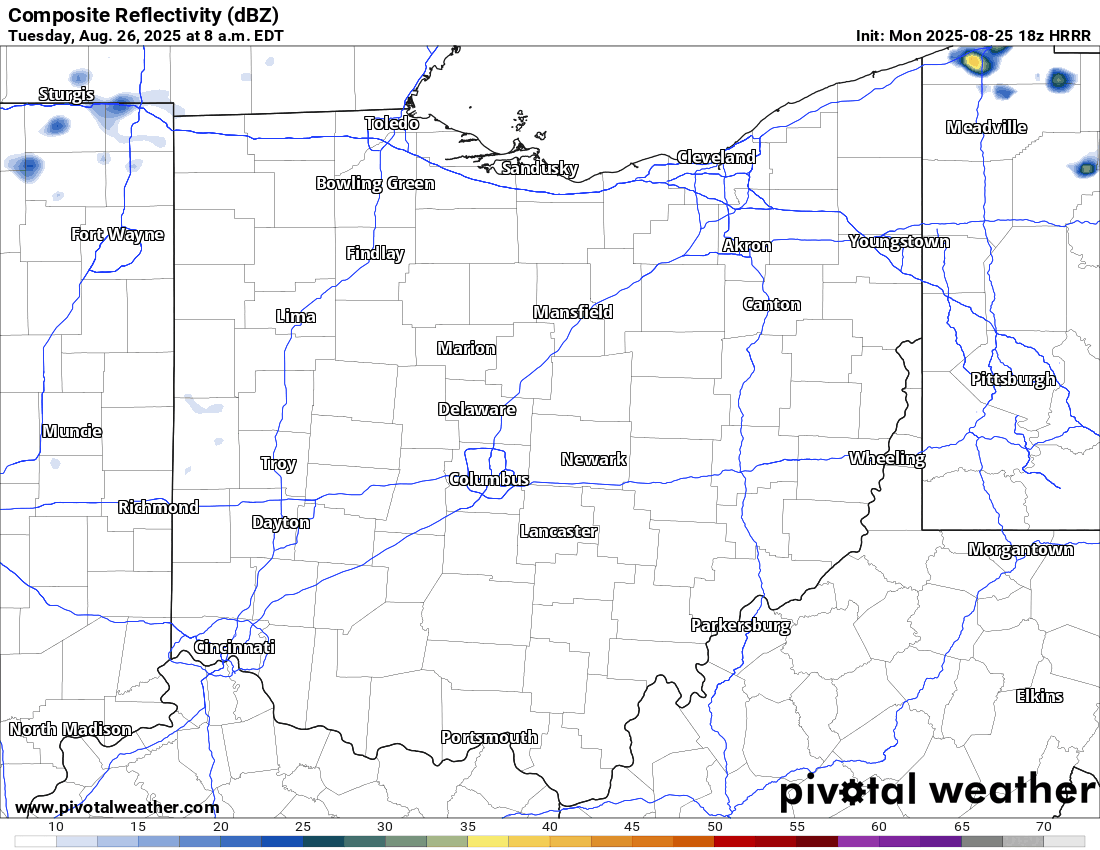 There’ll actually be some lake-effect showers and storms up near Lake Erie, along with possible waterspouts. But for central Ohio, shower activity will be much more sparse.