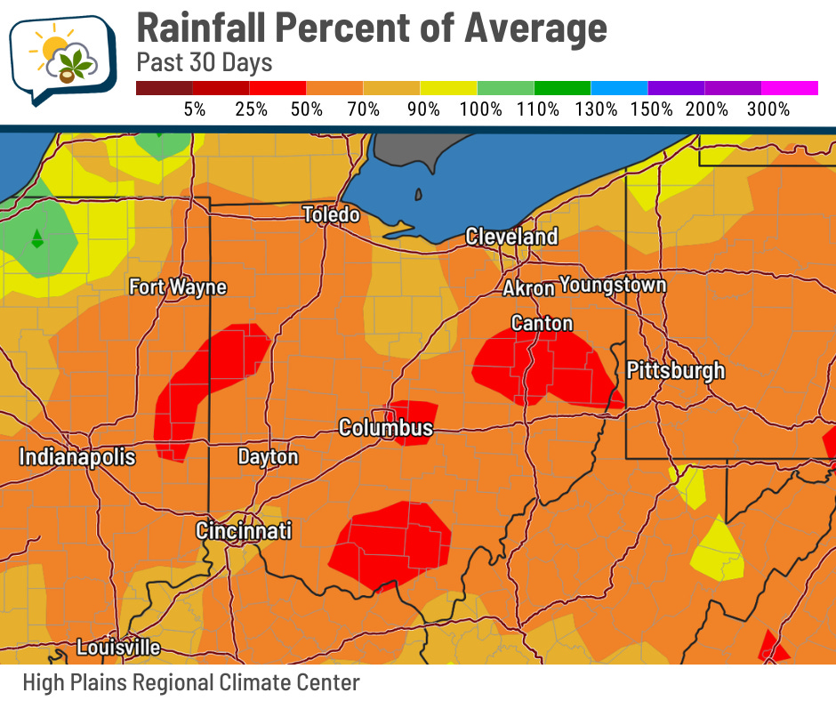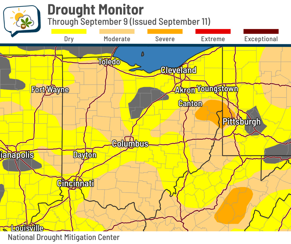 Last week, 29% of Ohio was in moderate drought. This week, it’s jumped to 48% — including 2% in severe drought.