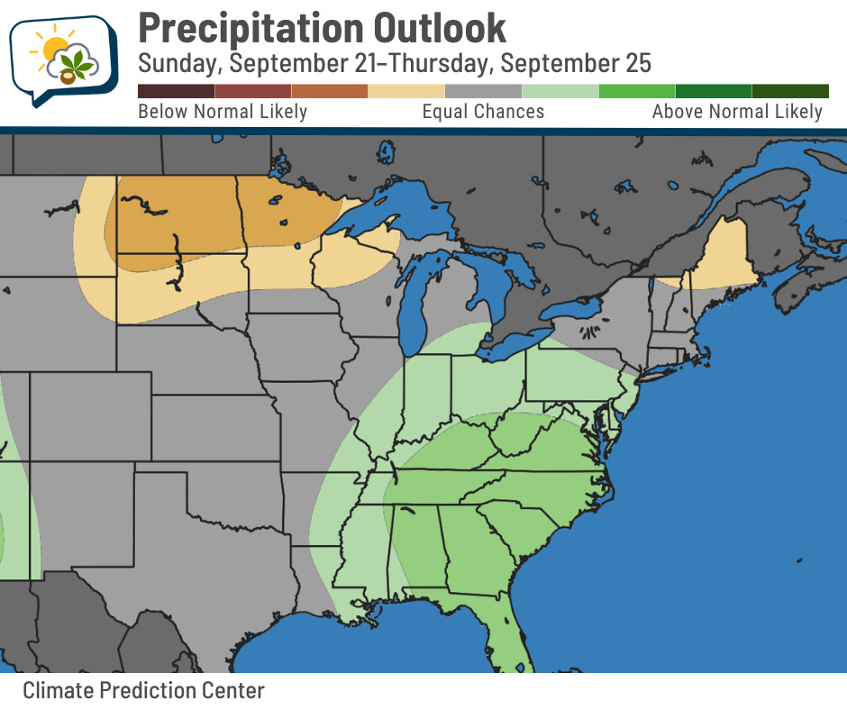 The Climate Prediction Center outlook has odds leaning toward above-average rainfall next week, but the chances break down to 39% chance above normal/33% chance near normal/29% chance below normal.