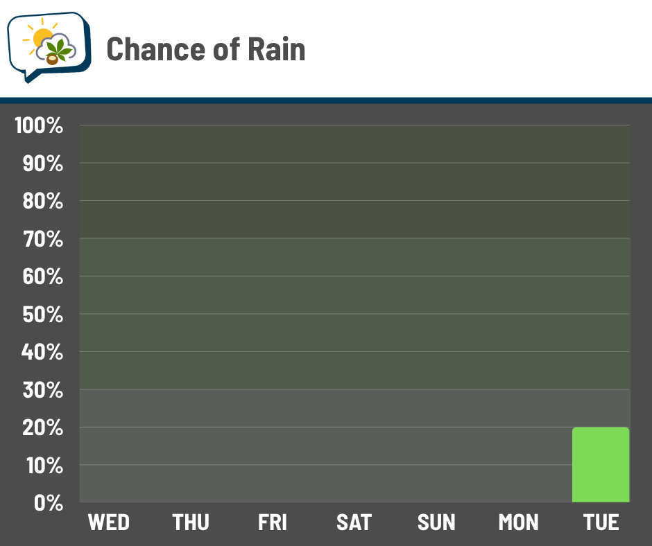 The aforementioned possible pattern change also means I see a speck of a chance of rain. But it’s not until next Tuesday.