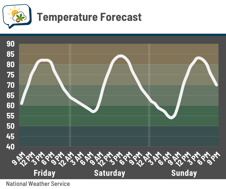 That’ll continue today into the weekend. Mornings start in the 50s, but highs pass 80. We’ll have hardly any clouds the next few days. As weird as this might sound, if you’re going to be out in the sun for a while, I recommend putting on sunscreen. (I’ve gotten a sunburn in October before, so I speak from experience.)