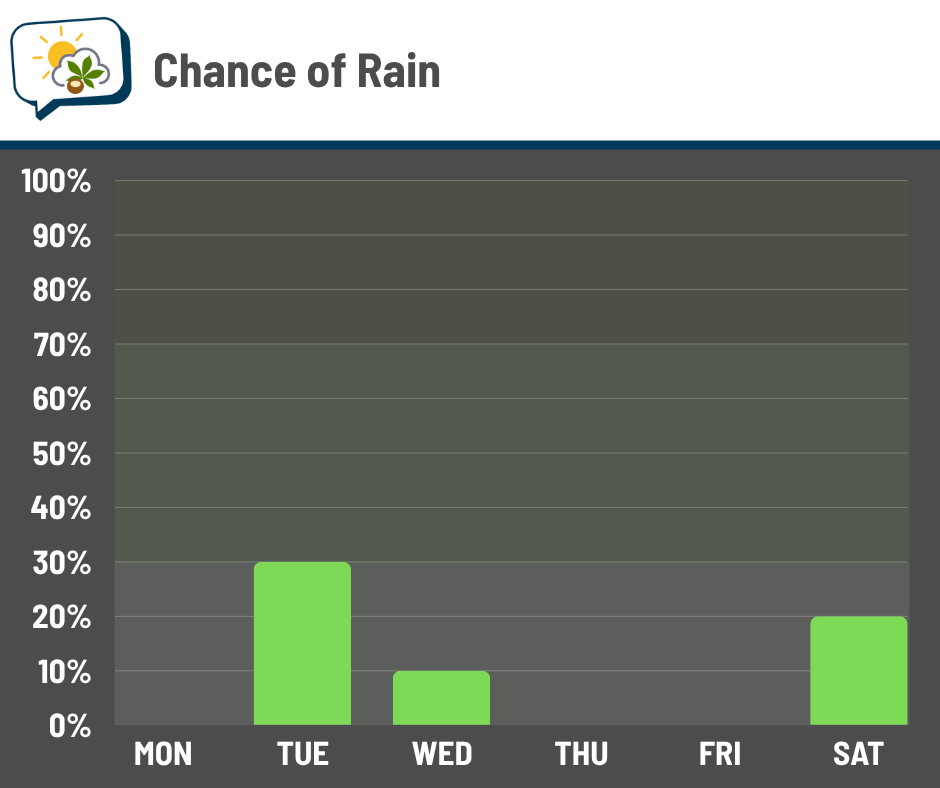 For next weekend, rain chances could come up from my current forecast, but I don’t have much confidence in timing or the track of that weather system at this point. For now, though, it doesn’t look like it’d be a major rain producer for us.