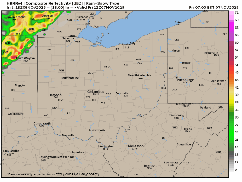 As you can sense from the map above, chances ramp up through the morning and drop off later in the afternoon, with activity largely out by evening. Another system (the one that dumps in the cold air) brings some spotty light rain then light snow later in the weekend into Monday… I’m still skeptical of much sticking.