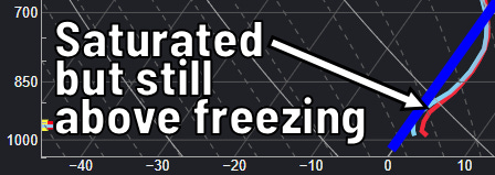 Let’s end this little lesson at noon. We’ll be saturated by then, which means there’s no dry air left to do any further cooling. Yet we’re above freezing, so still solidly rain… a chilly rain, to be sure, but rain nonetheless.