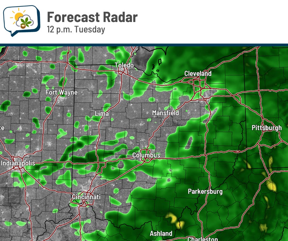 A soggy morning will turn less soggy this afternoon as the batch of rain becomes more scattered in nature.