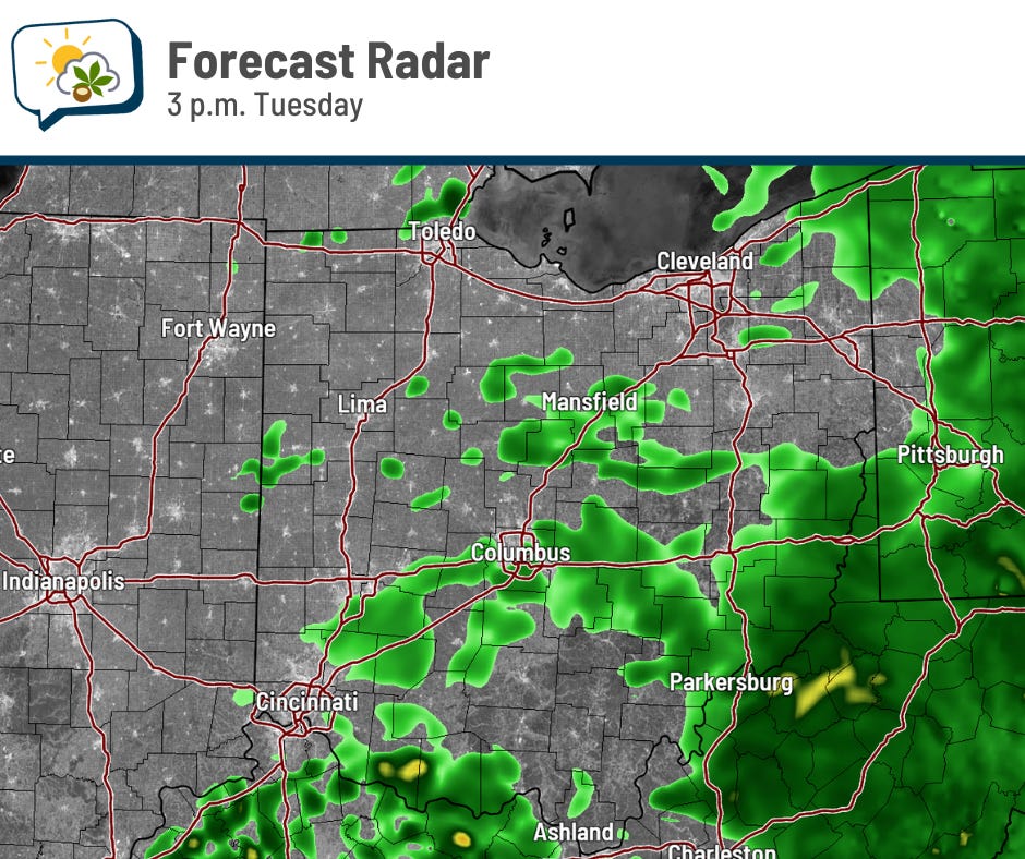 There’ll still be spotty showers right into the evening, but there’ll also be breaks. Total rainfall still looks to be near or over a half-inch as of this writing.