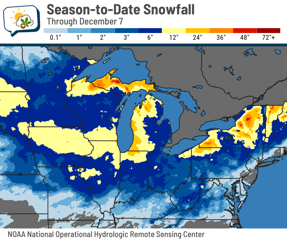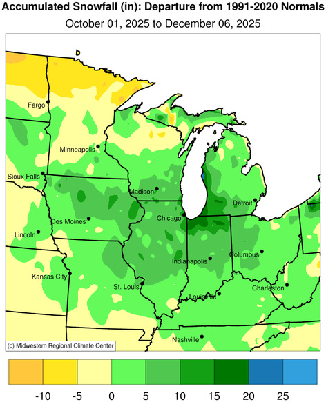 As you might imagine, season-to-date snowfall in many areas of the Midwest is above average.