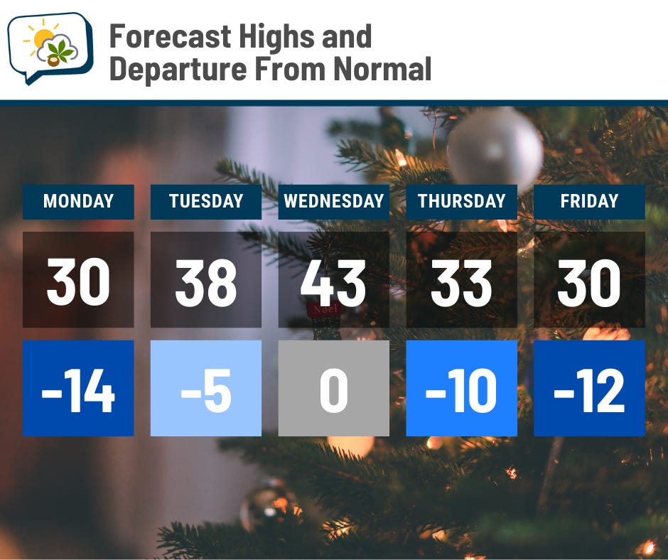 We managed to reach 40 at CMH on Sunday, soooo this will not be the first time since 2010 failing to hit 40 in the first week of December. That said, we haven’t had an above-average high since November 26.