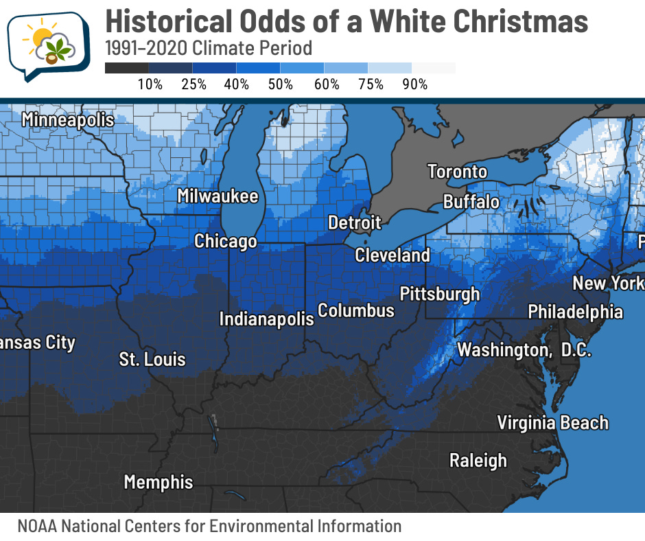 In any given year, climatology says central Ohio has about a 25% chance of a white Christmas — at least one inch of snow on the ground in the morning.