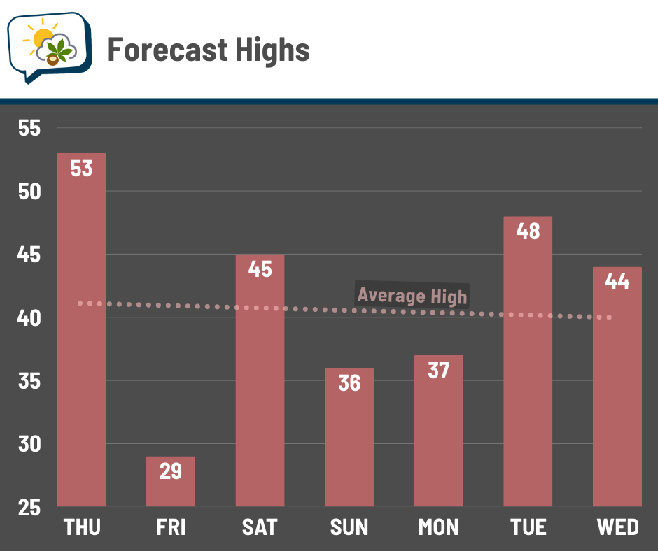 Don’t get used to 50s, though, as we have a sharp drop for Friday.