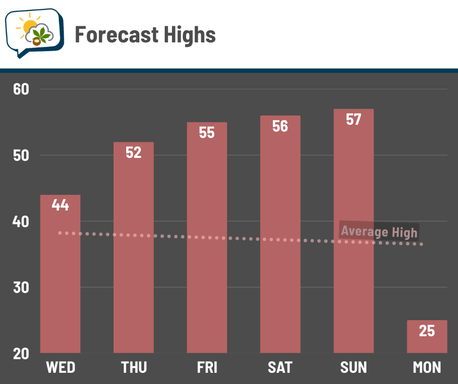 š„ļø Mostly cloudy, high in the lower to middle 40s.