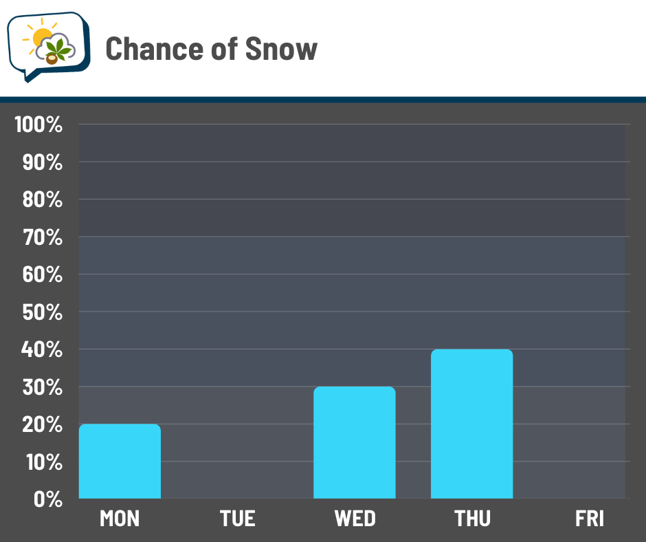 From Monday morning through Thursday morning, here’s the National Blend of Models’ chances of getting at least an inch of snow.