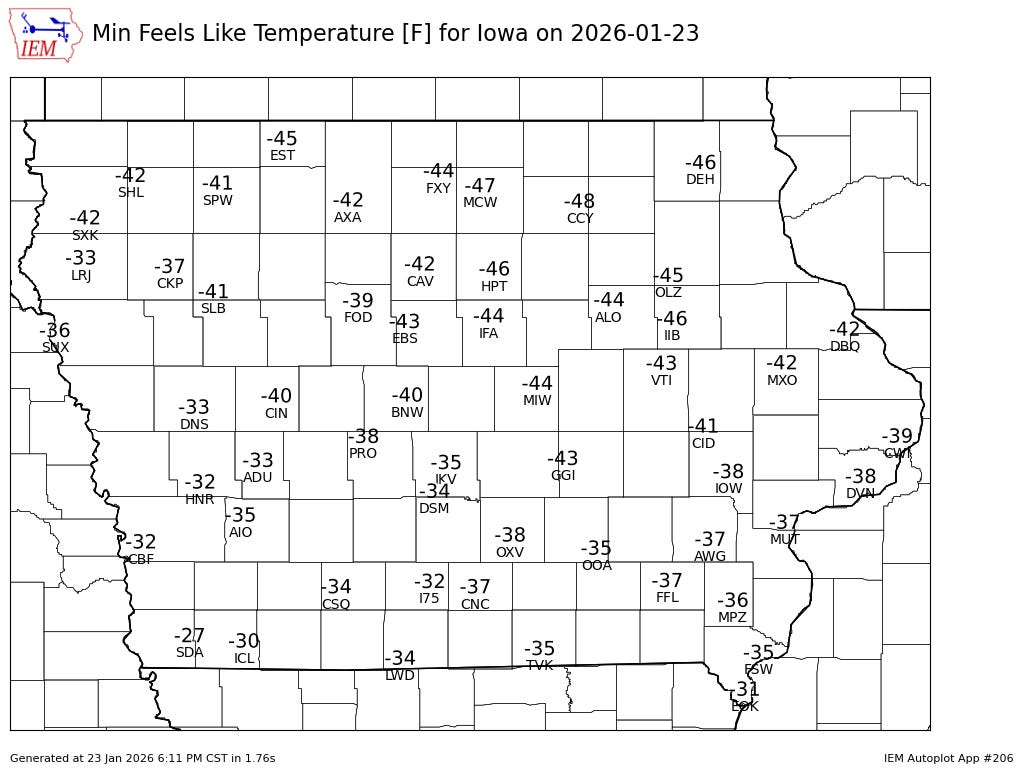 -40s wind chills in Iowa Friday morning. No idea how I lived there.