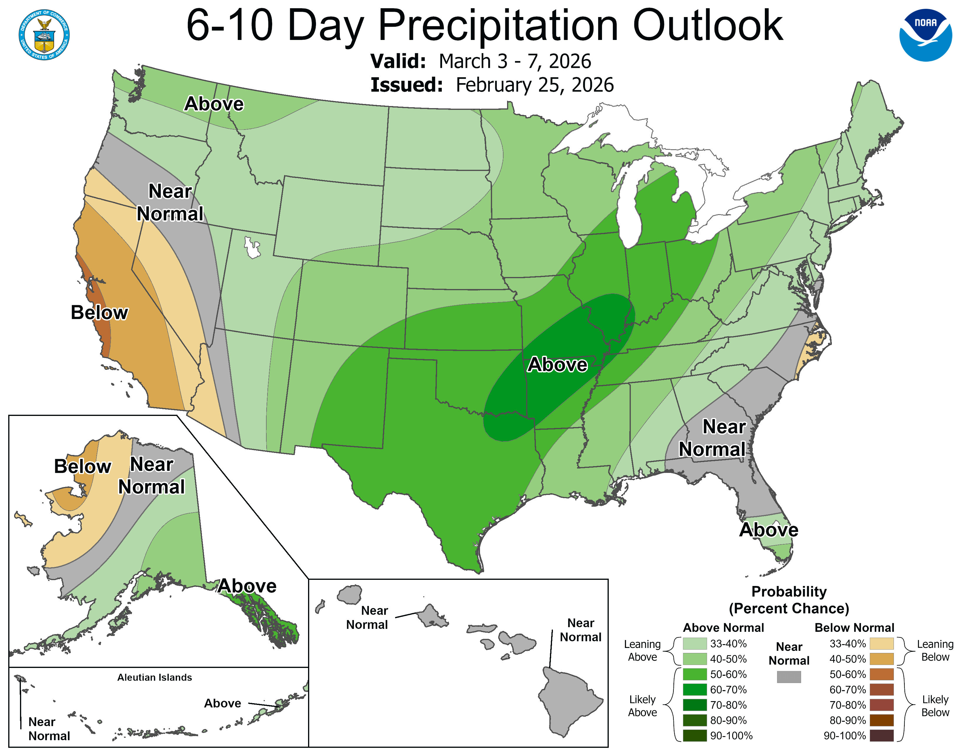 The Climate Prediction Center shows pretty good odds of next week being wetter than average.