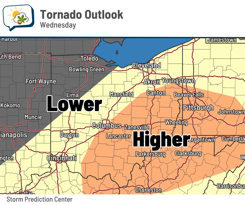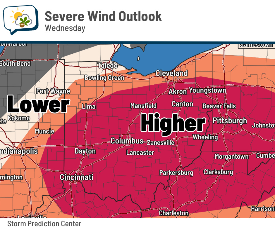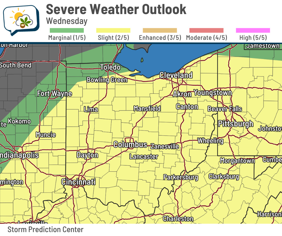 This part is… uh, tricky. As far as when the threat ends, the cold front should be through the Columbus metro by about 7 p.m. Wednesday, ending the risk of severe storms here as the activity heads east.